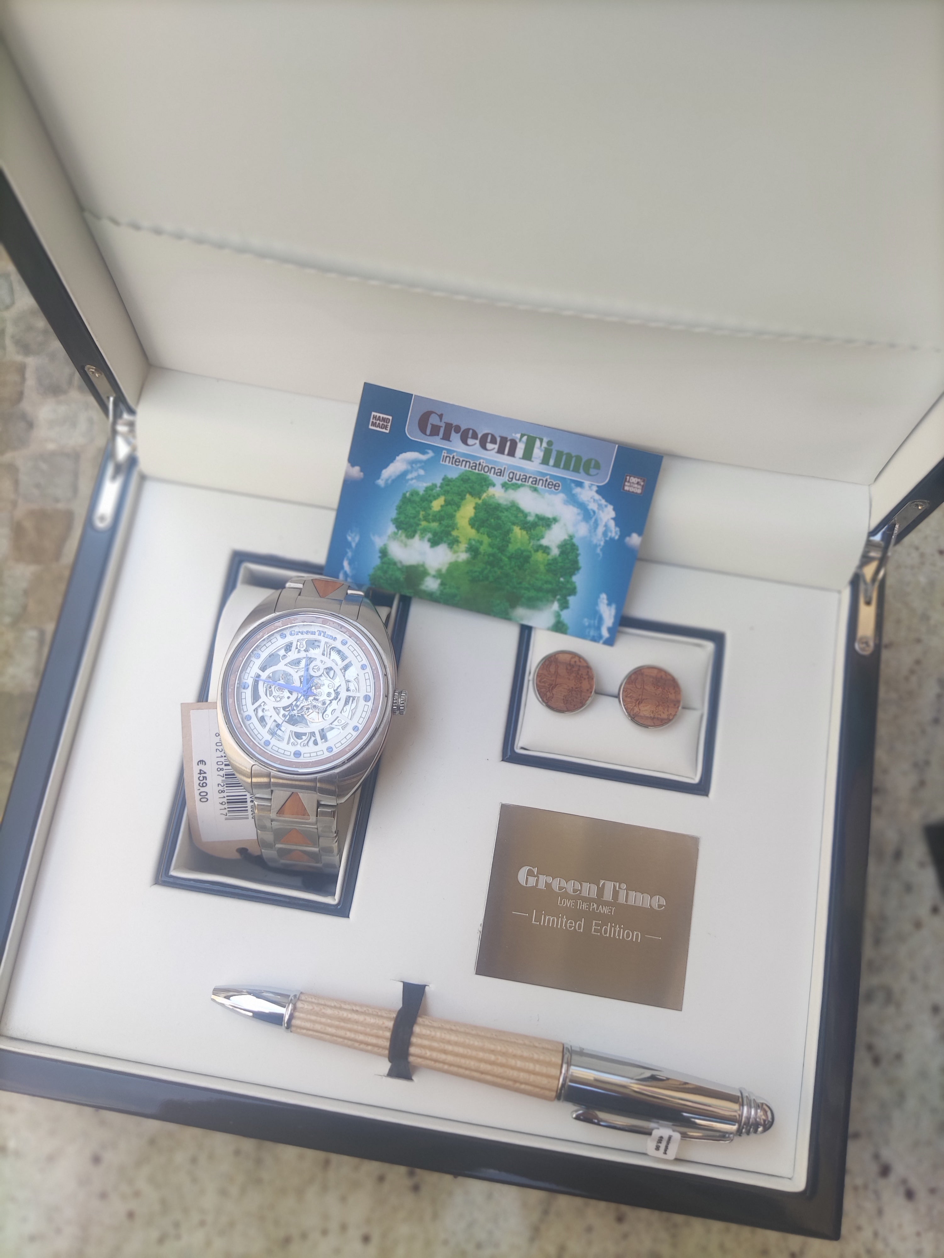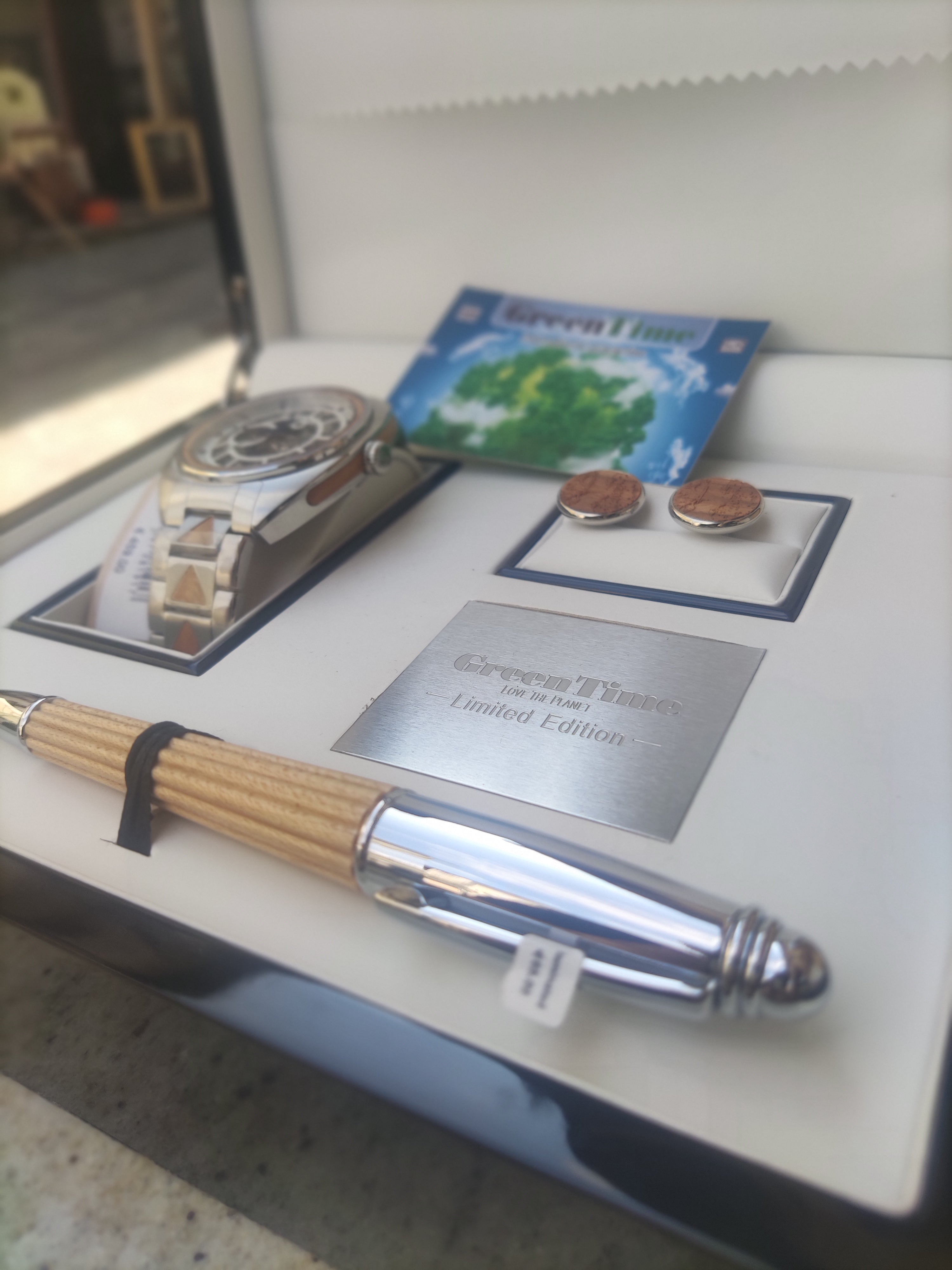 Bracciale in acciaio e inserti in legno per un design naturale e moderno. Cofanetto Limited Edition che include: Orologio Green Time ZW188B; Penna in legno abbinata; Gemelli in legno coordinati.